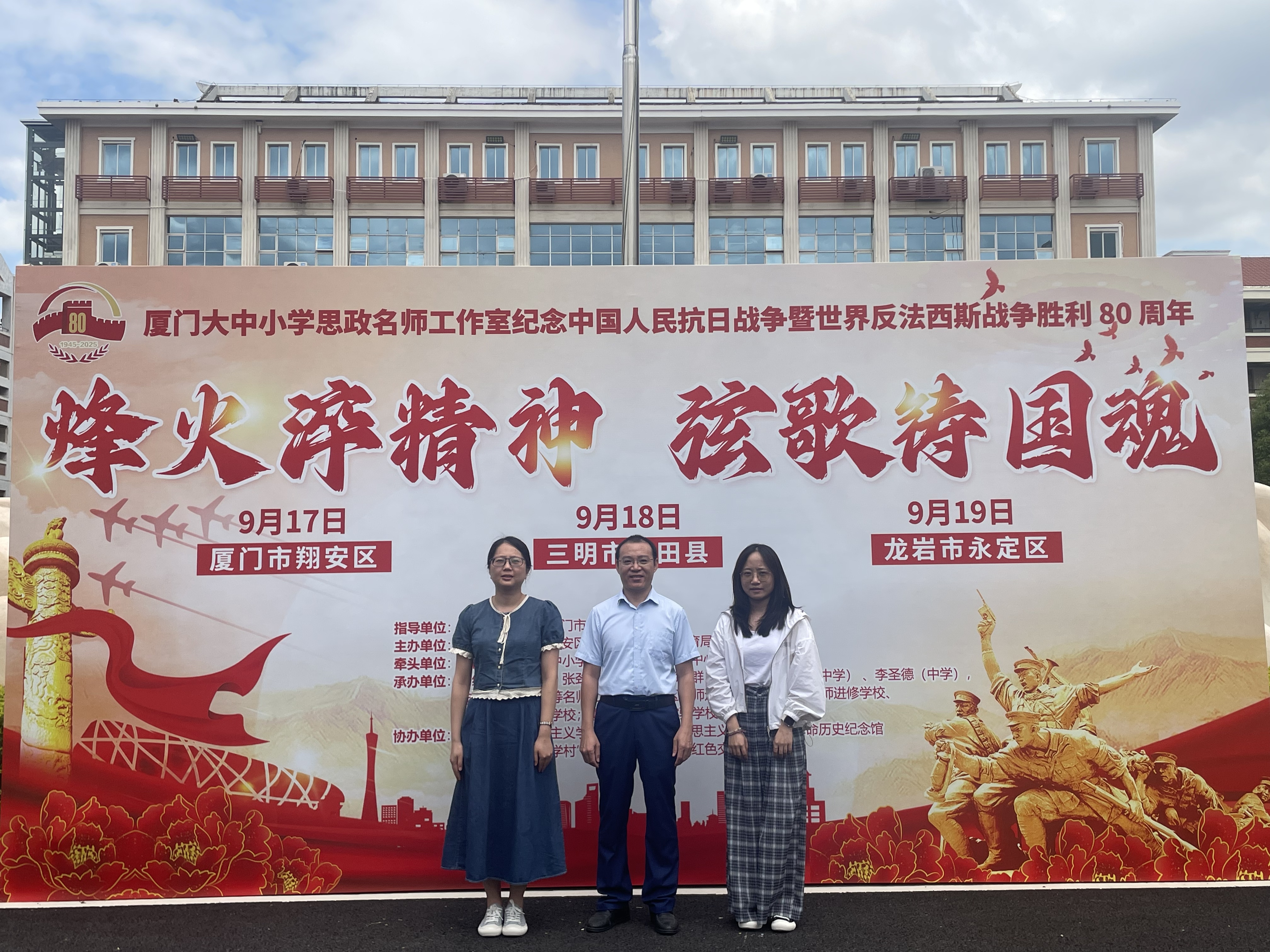 为深入学习贯彻习近平总书记关于抗日战争的重要论述精神,扎实推进大中小学思政课一体化建设走深走实,2025年9月17日,厦门南洋职业学院马克思主义学院执行院长林峰带队,和学院两位教师赴厦门市翔安区实验学校参加纪念中国人民抗日战争暨世界反法西斯战争胜利80周年"大思政课"翔安场主题活动。本次活动以"烽火淬精神 弦歌铸国魂"为主题,精心设计了环环相扣的议程安排,为参会者呈现了一场思想性与实践性兼具的思政教育盛宴。