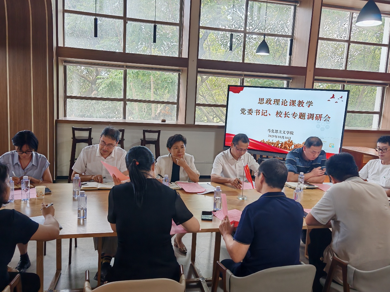 2025年10月10日下午,马克思主义学院于“马院小家”组织召开思政理论课教学“提升行动”专题调研会,校党委书记陈宏瑶、执行校长钟石根等校领导深入一线,开展现场办公,为思政课建设定标把脉、协同破题。校长助理侯红科、质量管理办公室主任陈雪红、教务处处长助理柯奕强,以及马克思主义学院院长、副院长、党总支书记等共14人参加会议。