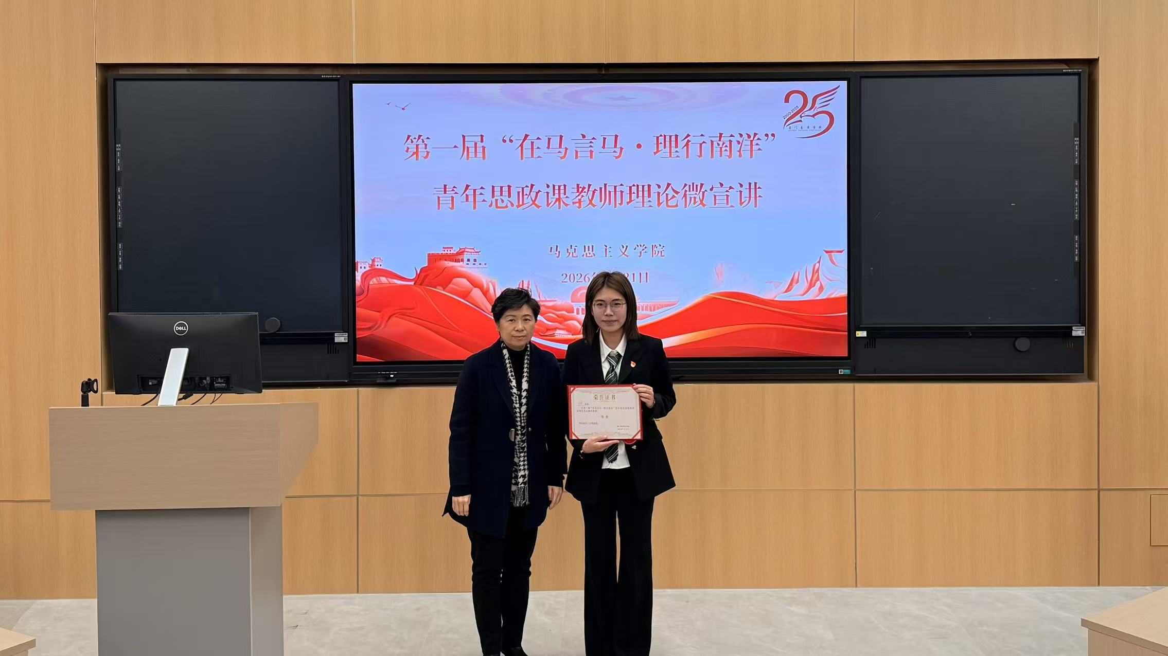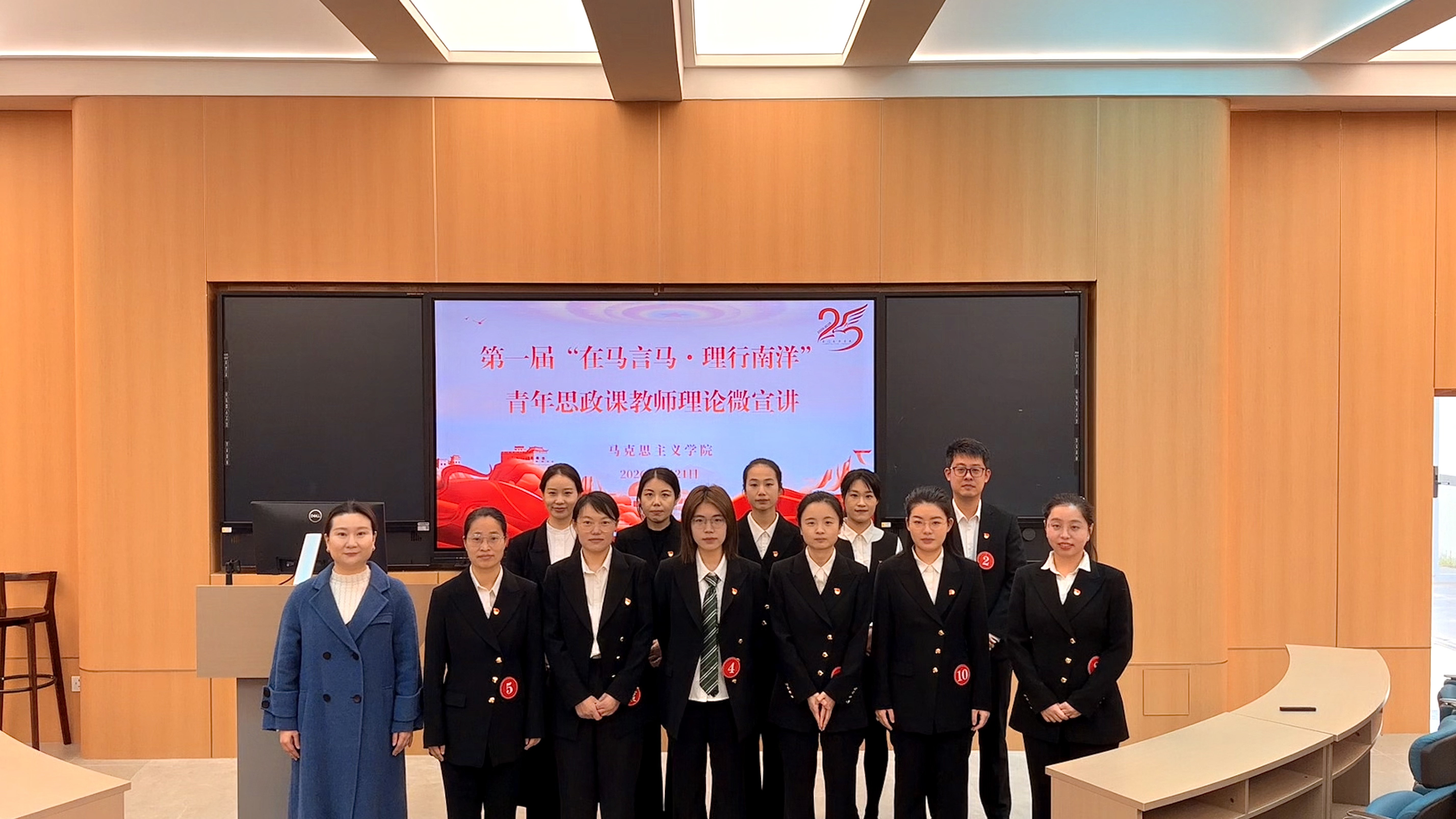 本次理论微宣讲的主题是“在马言马·理行南洋”,在比赛过程中,12名优秀青年教师紧扣时代脉搏,围绕马克思主义中国化时代化的最新理论成果、红色基因传承、区域发展精神谱系以及党的创新理论在南洋学院的具体实践等内容展开宣讲。选手们以精炼的微宣讲,将深刻理论融入生动叙事,或激情澎湃,或娓娓道来,充分展现了新时代思政课教师扎实的理论素养、创新的教学方法和饱满的精神风貌。比赛现场气氛热烈,精彩纷呈。