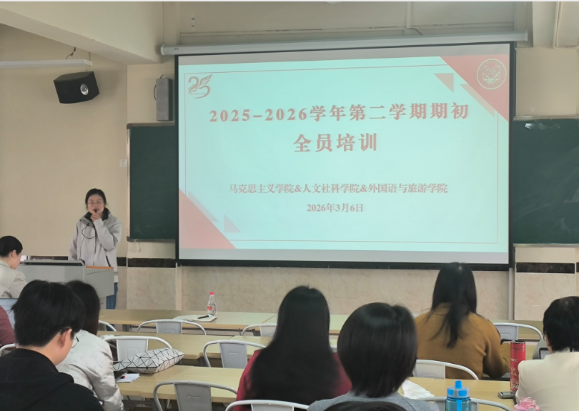 为深入贯彻落实学校总体工作部署,全面提升教职工教学与科研能力,筑牢意识形态安全防线,2026年3月5日至6日,马克思主义学院/人文社科学院/外国语与旅游学院在教学楼A401进行2025-2026学年第二学期期初培训,本次培训由副院长丛义霞主持。